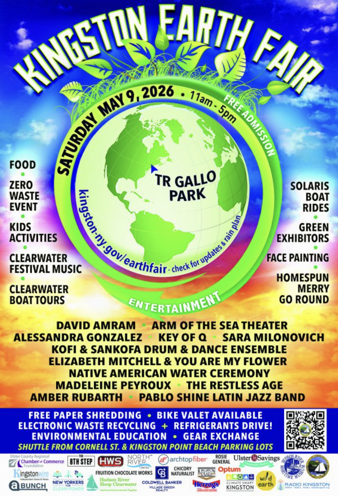 Kingston’s 12th Annual Earth Fair is back on May 9th, 2026 at TR Gallo Park in Downtown Kingston, and it’s completely free. Put on by the City of Kingston and the Climate Smart Kingston Commission, the day will be packed with live music on two stages, food trucks, vendors, kids’ activities, a gear exchange, and environmental education. This year also includes free e-waste and refrigerant recycling, plus free confidential paper shredding. New Yorkers for Clean Power is among the sponsors, and a wide range of local organizations will have booths. If you want to get involved, volunteer sign-ups are open at the link on the event page.