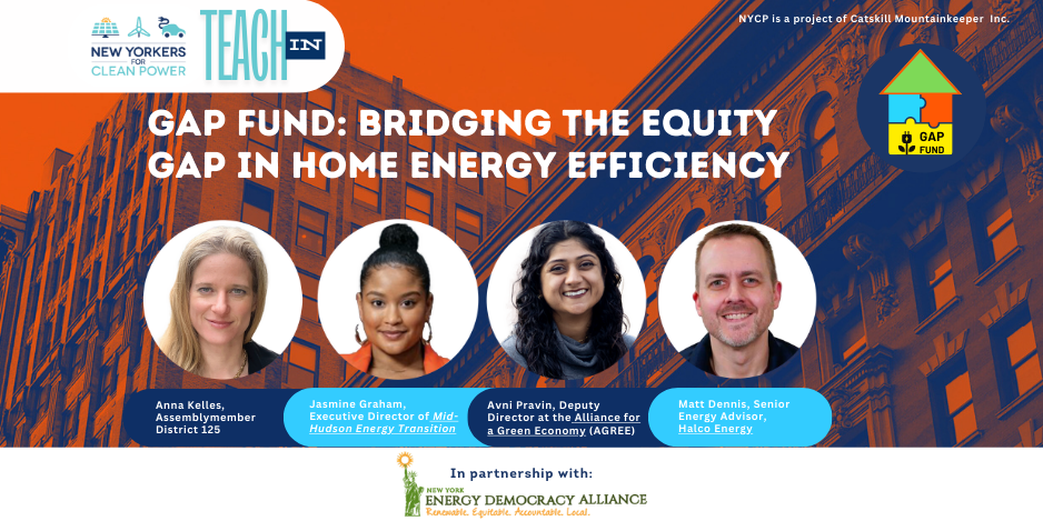 In January, our expert panel and advocates joined us for the “The GAP Fund: Bridging the Equity Gap in Home Energy Efficiency” Teach-In. We’re energized by the important conversations and engagement around ensuring all New Yorkers—especially low- and moderate-income households—can access home energy upgrades that improve health, lower costs, and support an equitable clean energy transition.